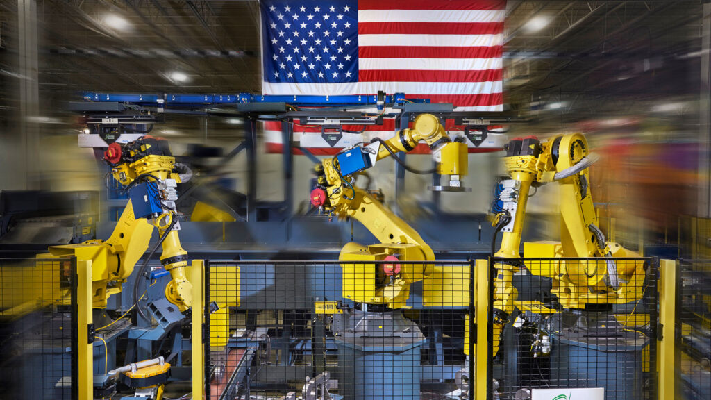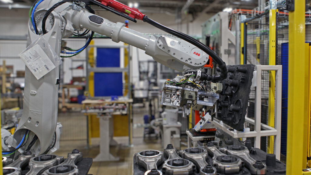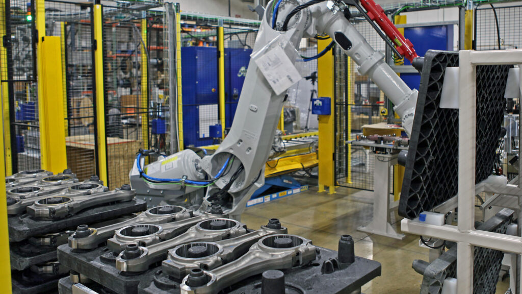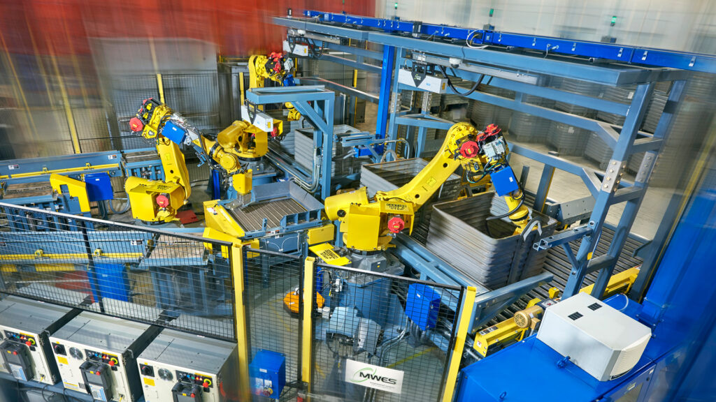 MWES designs and implements heavy, factory-scale robotic systems tailored for mining and agricultural vehicle production including engines, frames, and structural components.