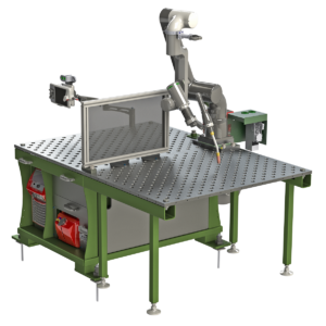 The EasyArc Laser Cart pairs the ABB GoFa™ collaborative robot with the THEO MA1 ULTRA handheld laser welder to deliver: