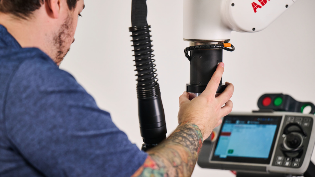 The foundation of the EasyArc platform, this system pairs the ABB GoFa™ collaborative robot with the Fronius TPS320i MIG welding package in a fully integrated mobile cart: