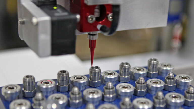 The customer needed an automated solution capable of precisely measuring and depositing adhesive while also ensuring speed and part accuracy.