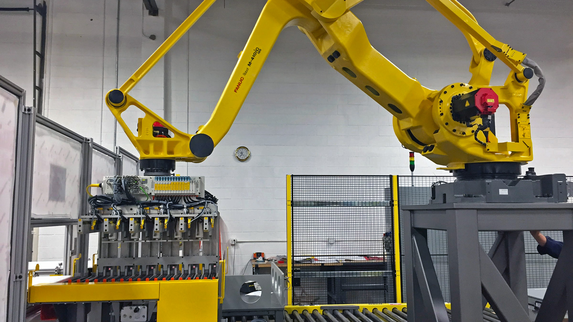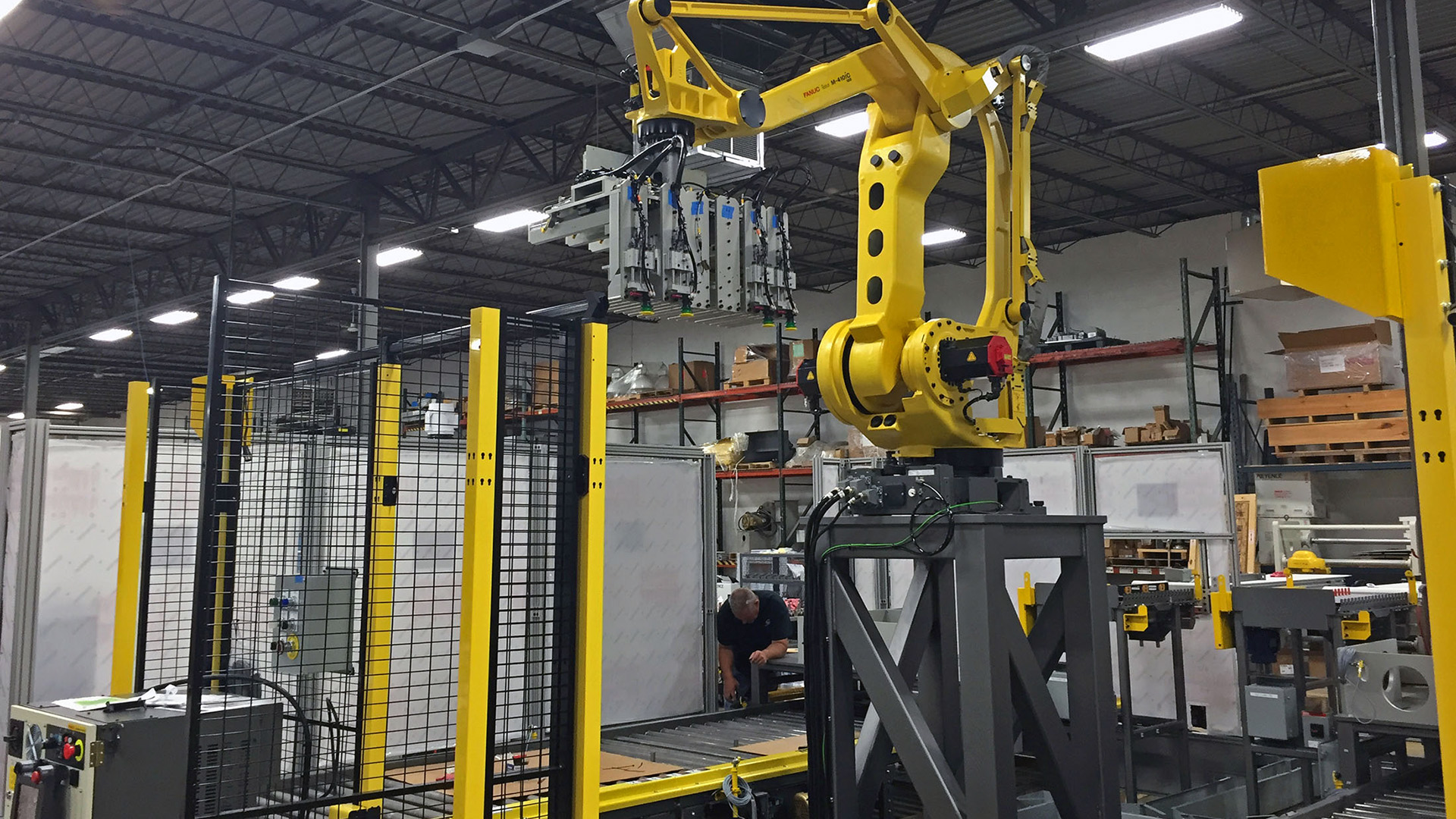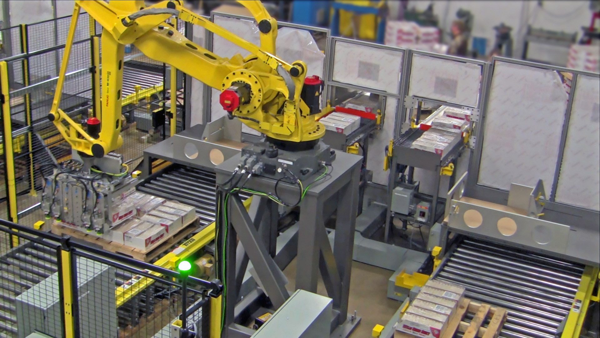 • Two high-capacity FANUC robots—one for tray handling and one for cases