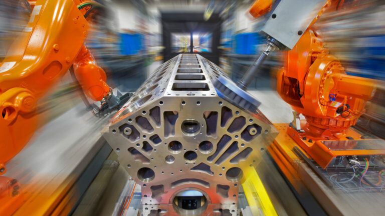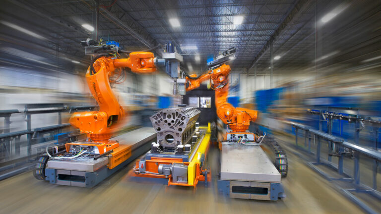 MWES engineered two fully automated deburring and polishing systems tailored to the customer’s specific engine block production process. Each system includes two track-mounted ABB robots equipped with advanced sensing and deburring tools.
